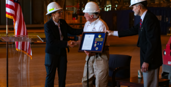 Following the steel cutting ceremony for NSMV 3, Philly Shipyard invited MARAD to present the Congressional Gold Medal to a local World War 2 Merchant Marine veteran.