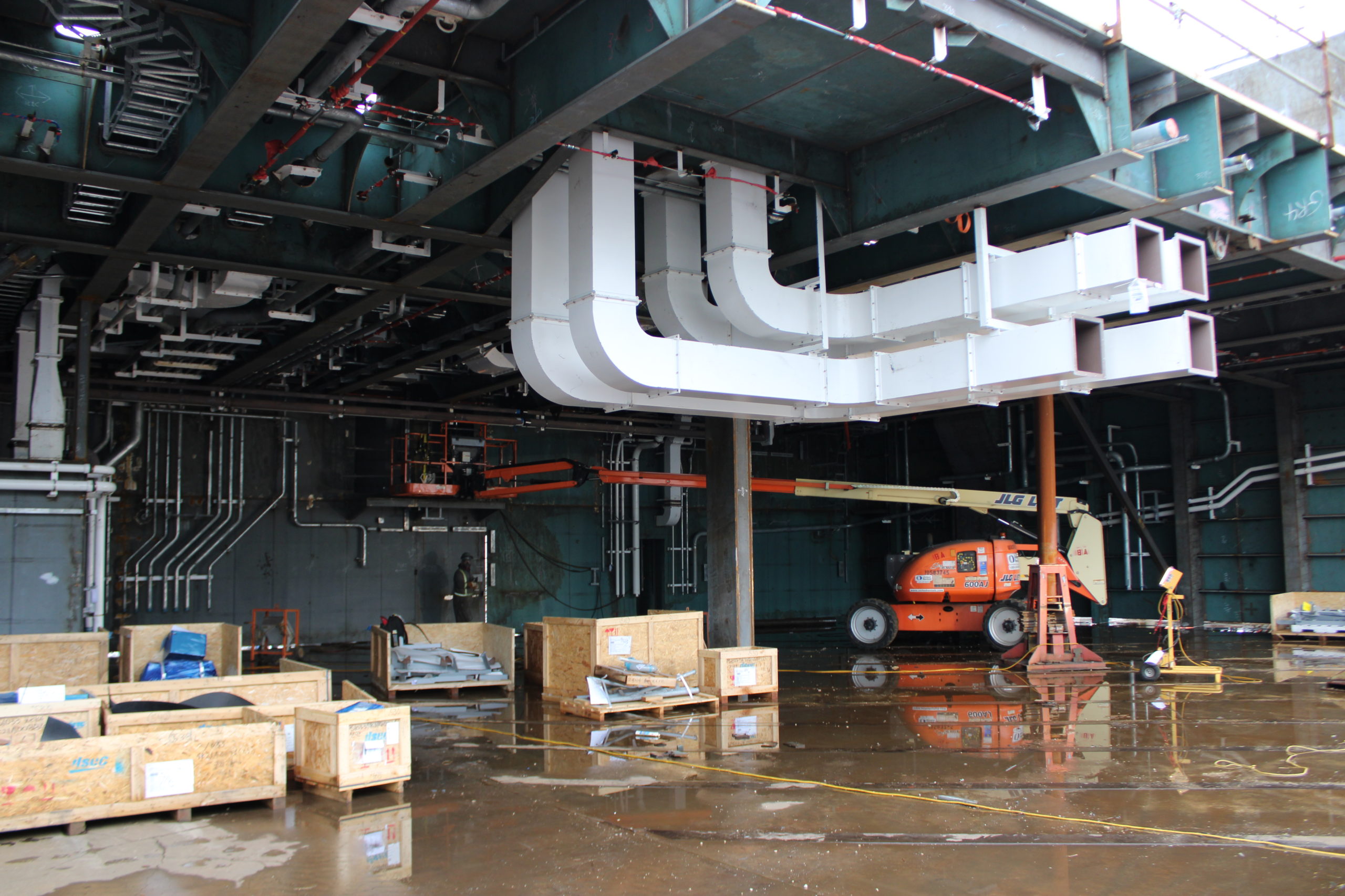 Grand block 130 in the dry dock. Currently, both insulation and cable are being installed in this unit.